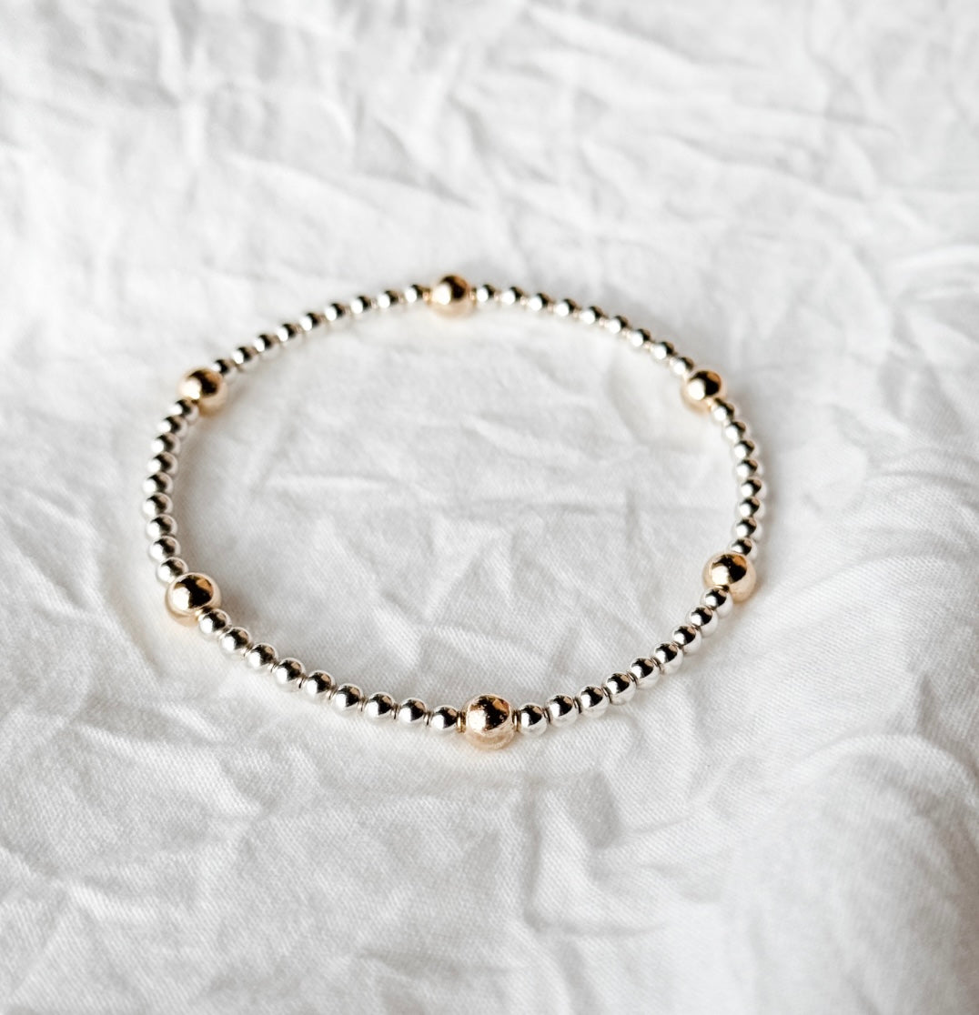 One of our best-selling designs, The Park Place Bracelet, is now available in mixed metal! This beauty is designed using various gold-filled and sterling silver bead sizes and is the perfect addition to your wrist. She looks gorgeous stacked with others and also shines beautifully on her own! This one is a must have for your collection!